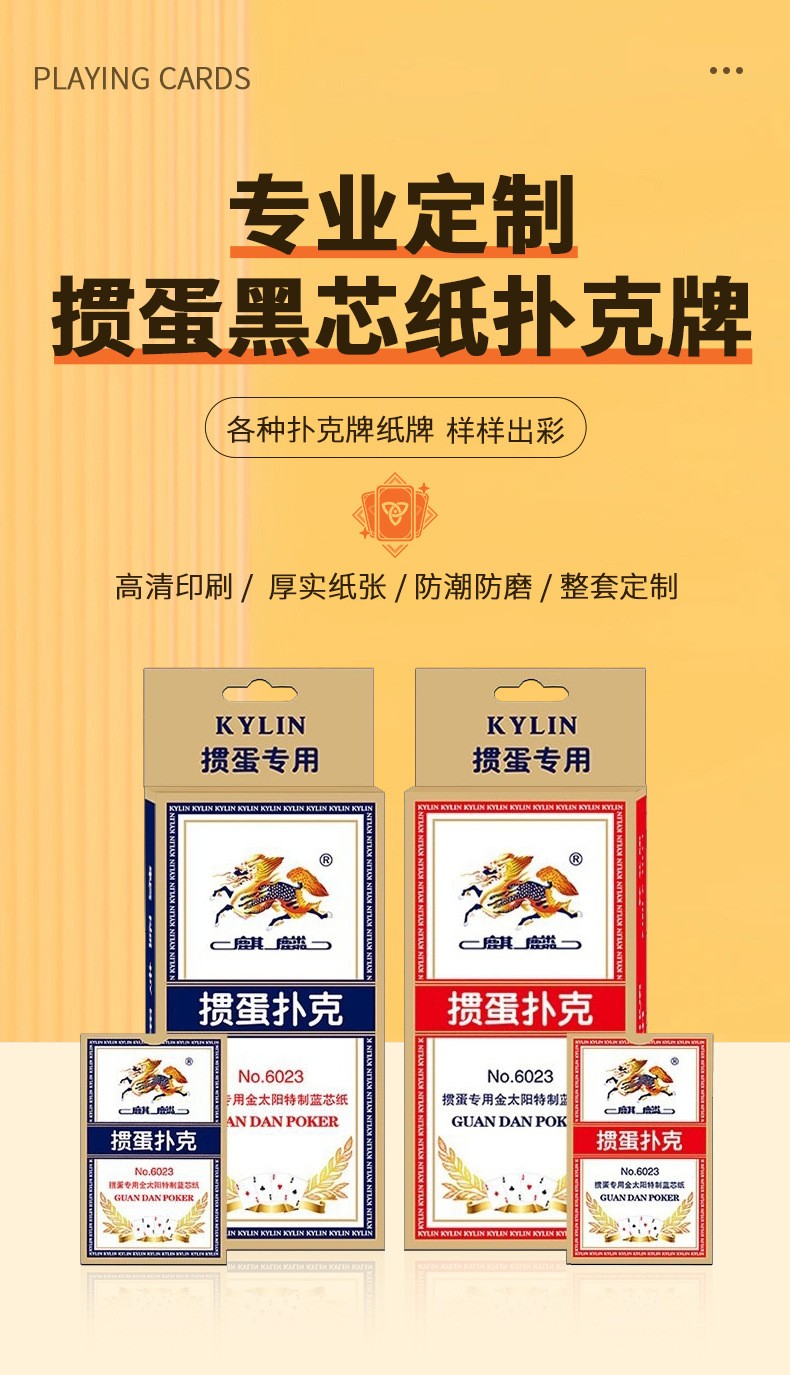 6023麒麟掼蛋专用扑克牌,菏泽环宇包装印刷有限公司掼蛋扑克 广告扑克